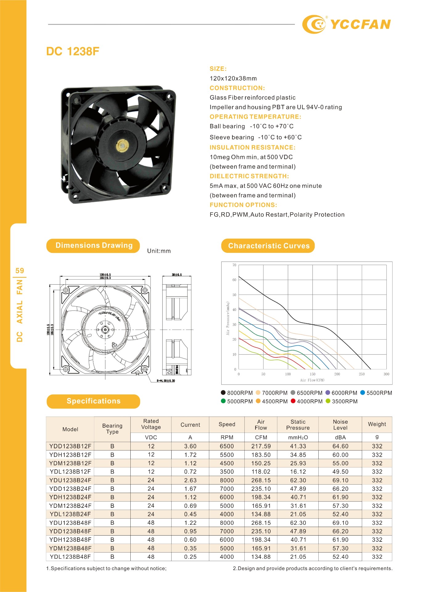 CONSTRUCTION:Glass Fiber reinforced plastic Impeller and housing PBT are UL 94V-0 rating