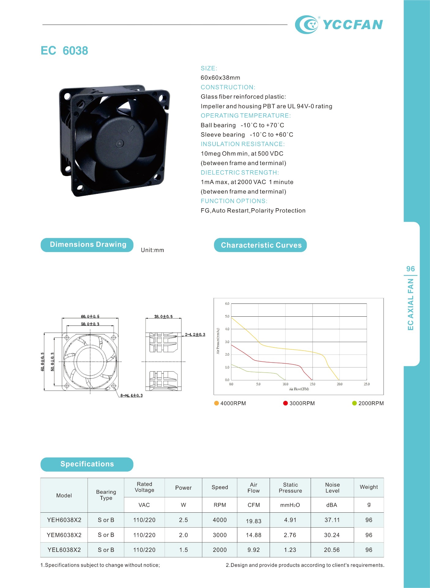 YEL6038x2 | S or B | 110/220 | 1.0 | 2000 | 9.92 | 1.23 | 20.56 | 96 |