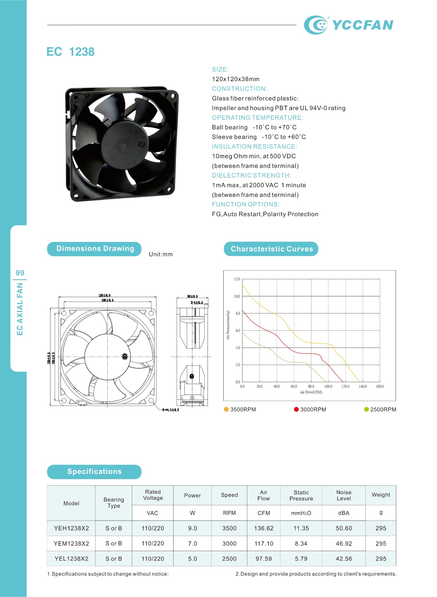 YEH1238×2 | S or B | 110/220 | 9.0 | 3500 | 136.62 | 11.35 | 50.60 | 295 |