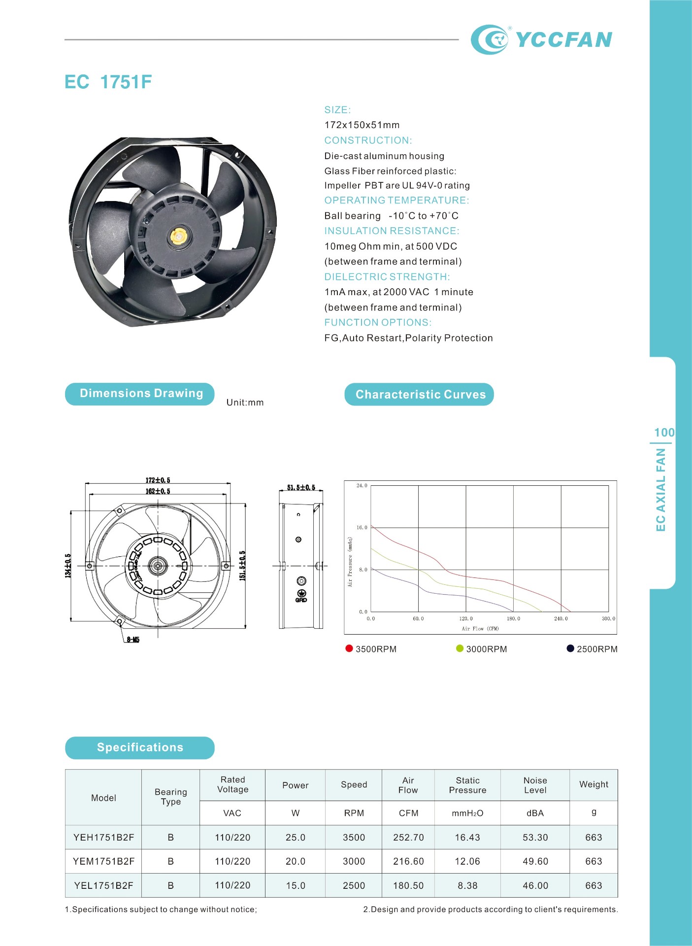 YEH1751B2F | B | 110/220 | 25 | 3500 | 252.7 | 16.43 | 53.3 | 663 |