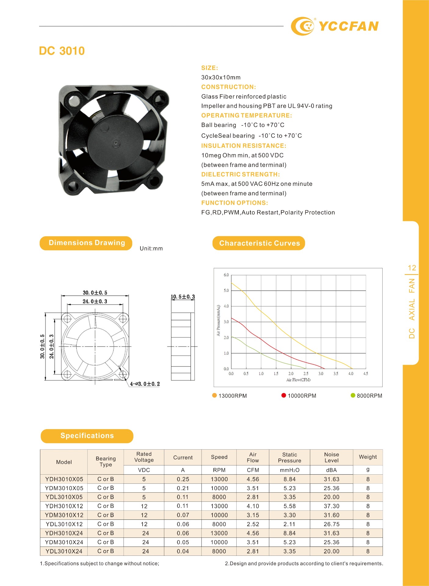 YDM3010X12 | C or B | 12 | 0.07 | 10000 | 3.15 | 3.30 | 31.60 | 8 |