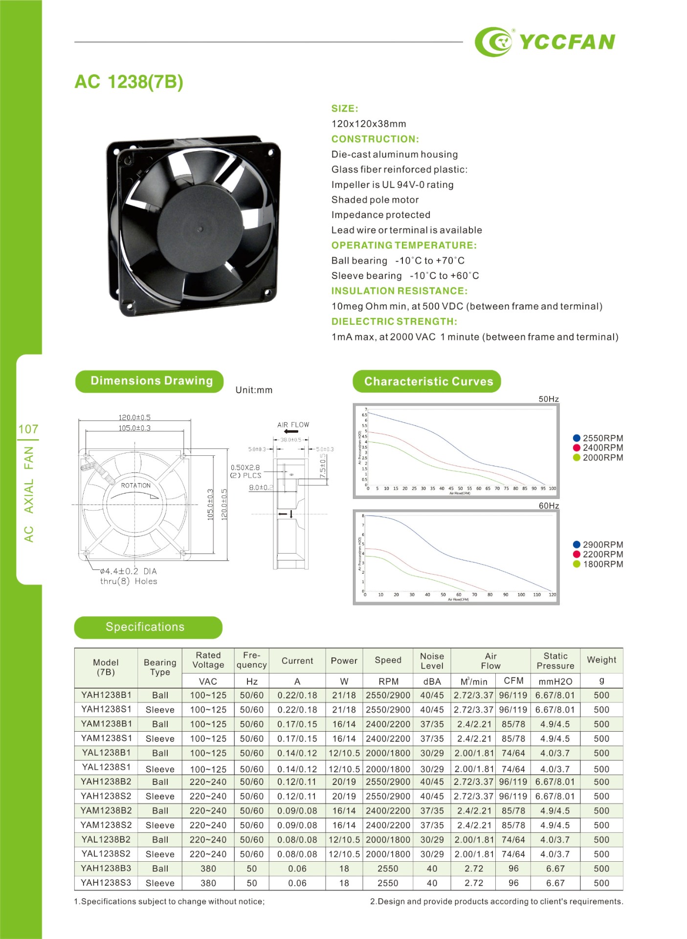 YAH1238S2 | Sleeve | 220-240 | 50/60 | 0.12/0.11 | 20/19 | 2550/2900 | 40/45 | 2.72/3.37 | 96/119 | 6.67/8.01 | 500 |