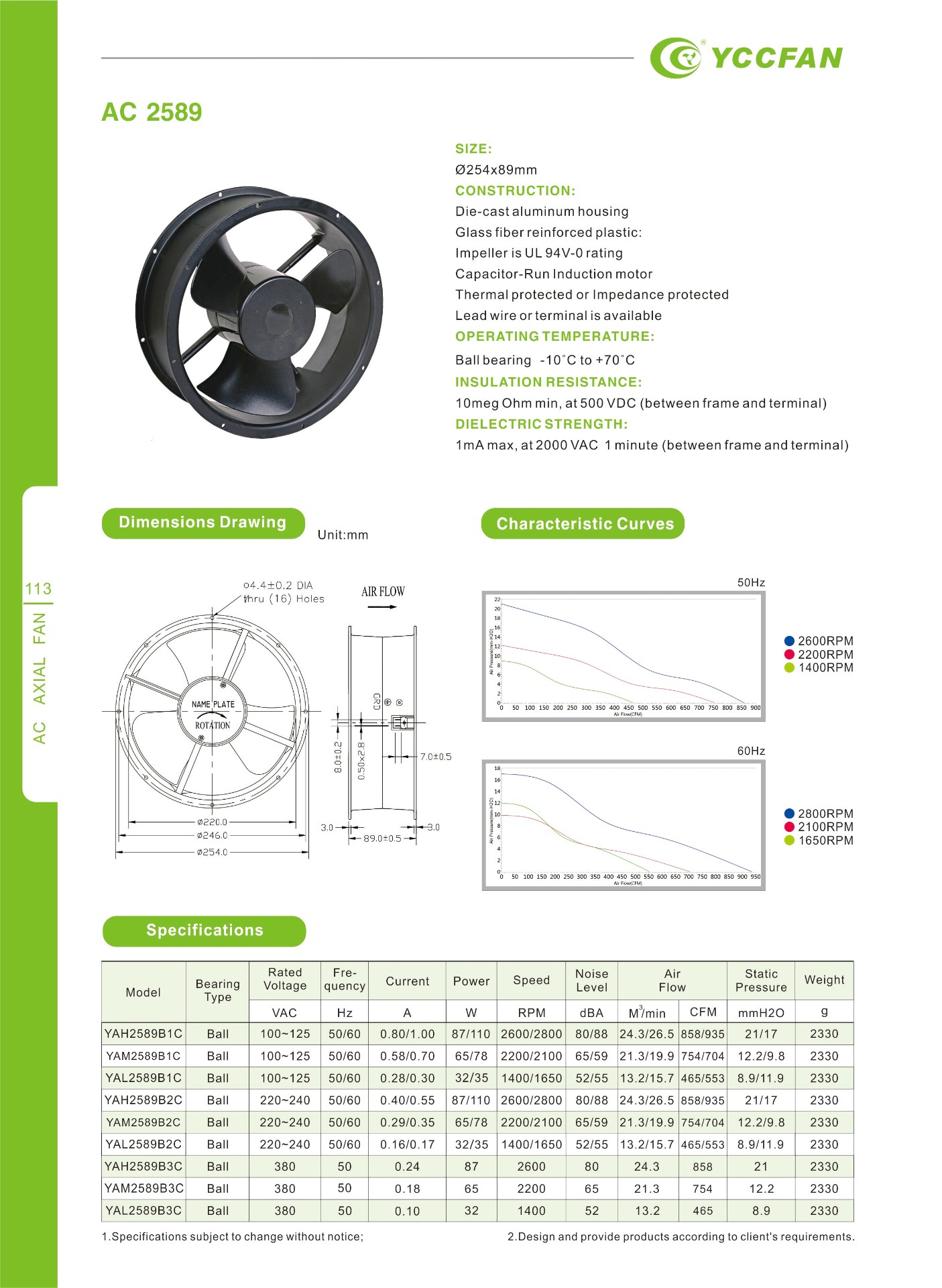 YAL2589B1C | Ball | 100~125 | 50/60 | 0.28/0.30 | 32/35 | 1400/1650 | 52/55 | 13.2/15.7 | 465/553 | 8.9/11.9 | 2330 |