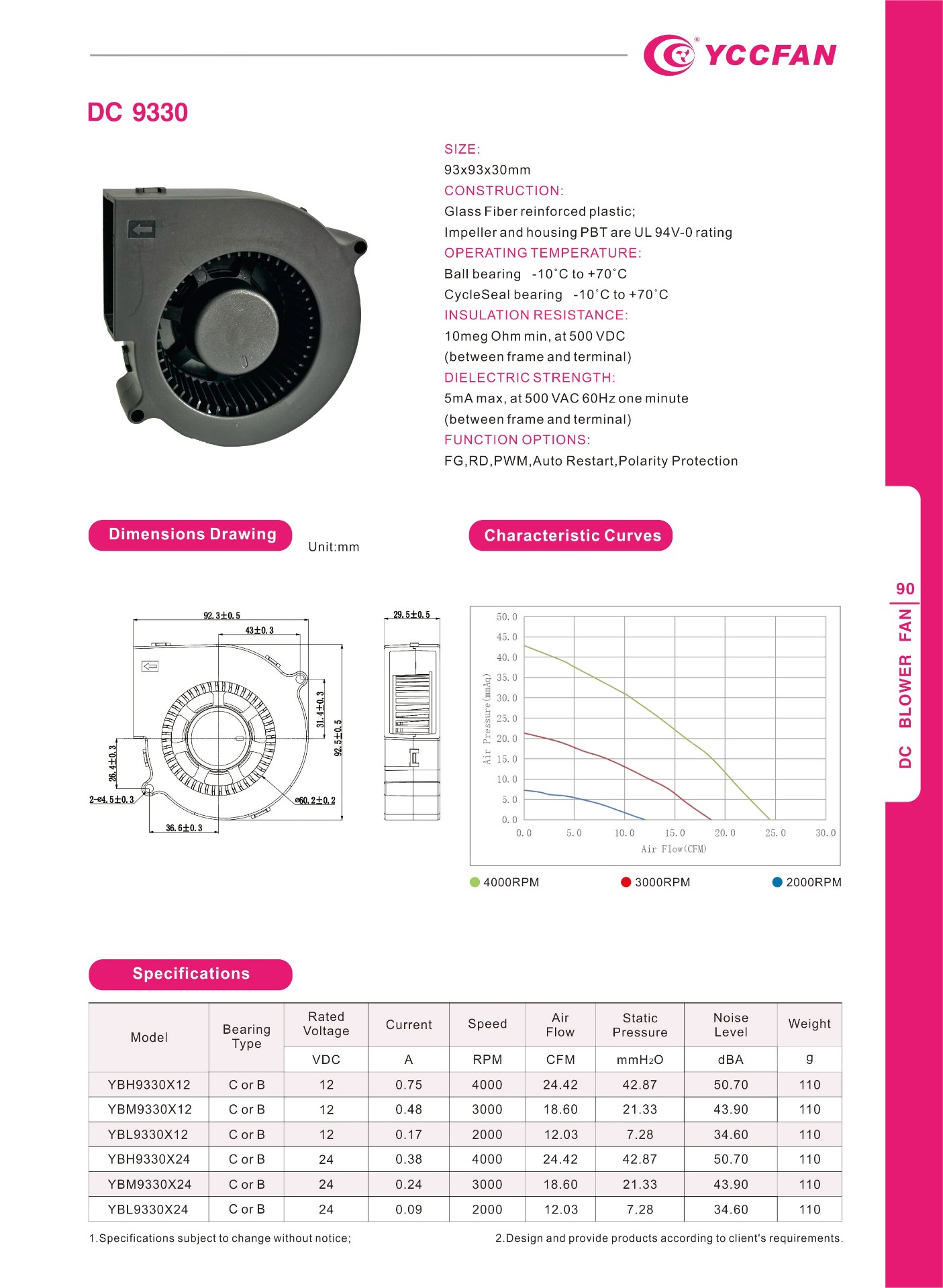 CONSTRUCTION:Glass Fiber reinforced plastic: Impeller and housing PBT are UL 94V-0 rating